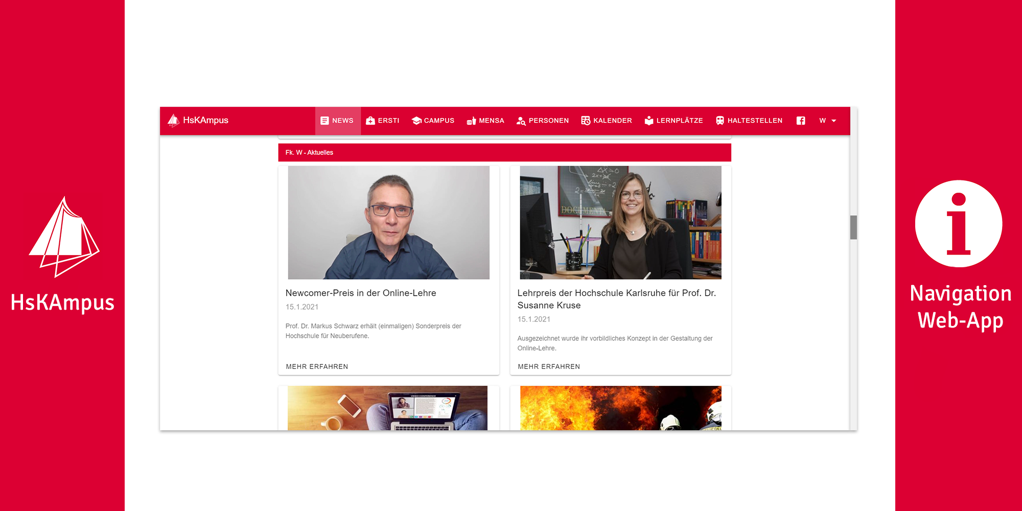 Web-App: Vereinfachte Navigation und Überarbeitung der News-Blöcke